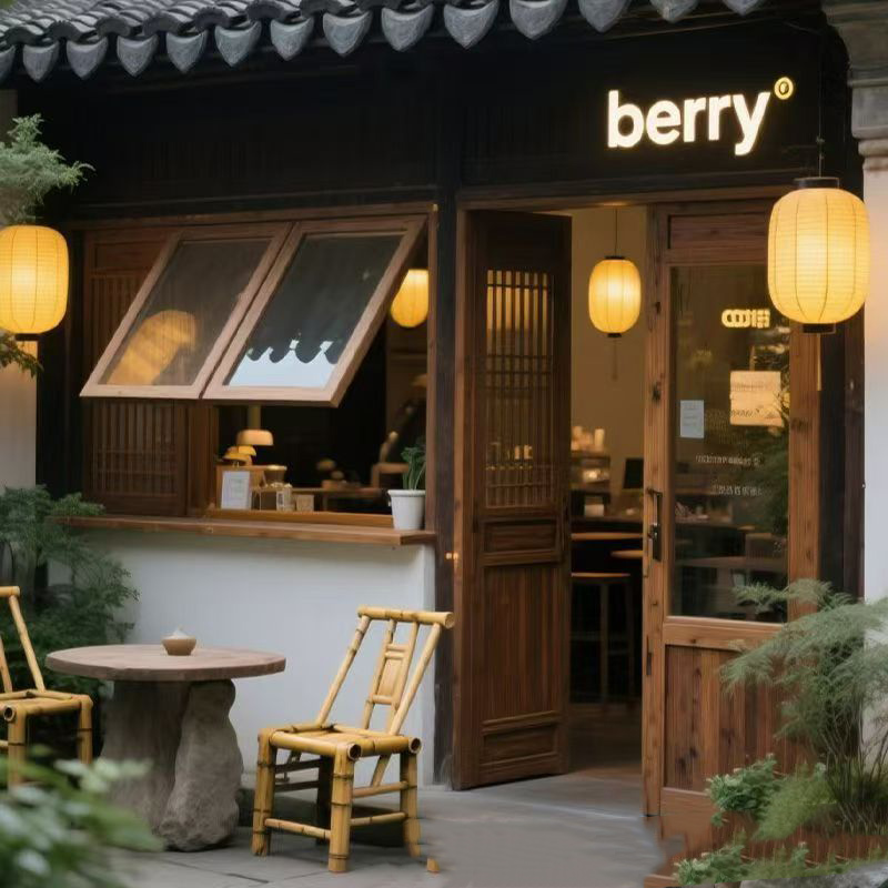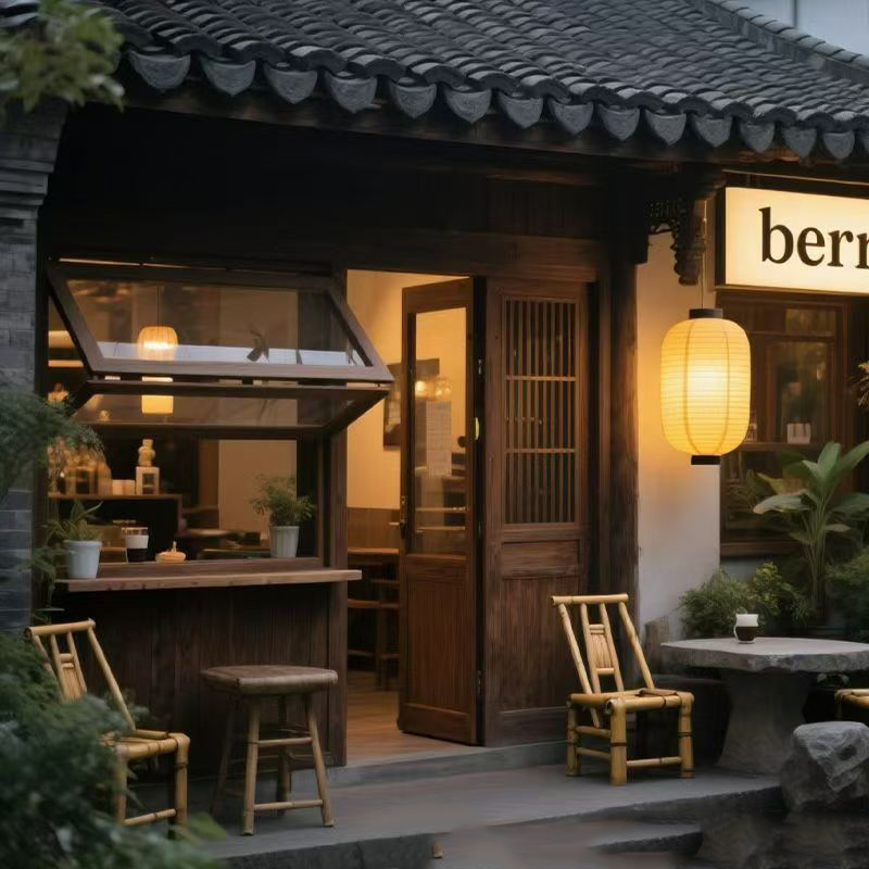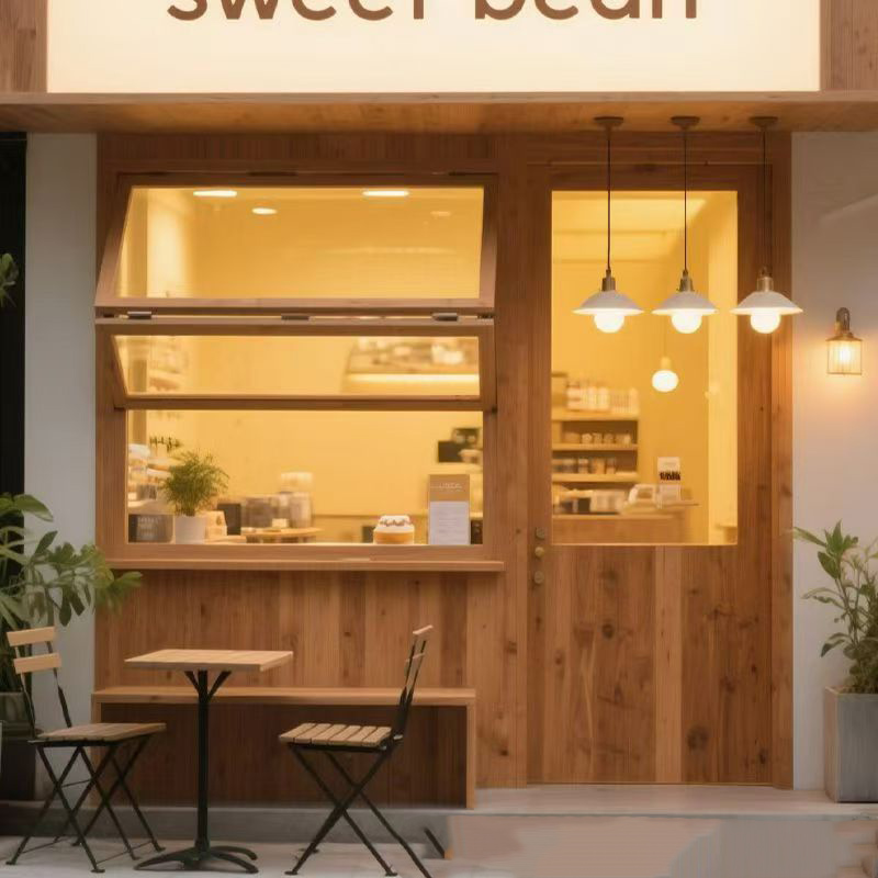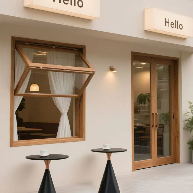 Old elm window frame solid wood up and down folding window coffee shop cake shop door